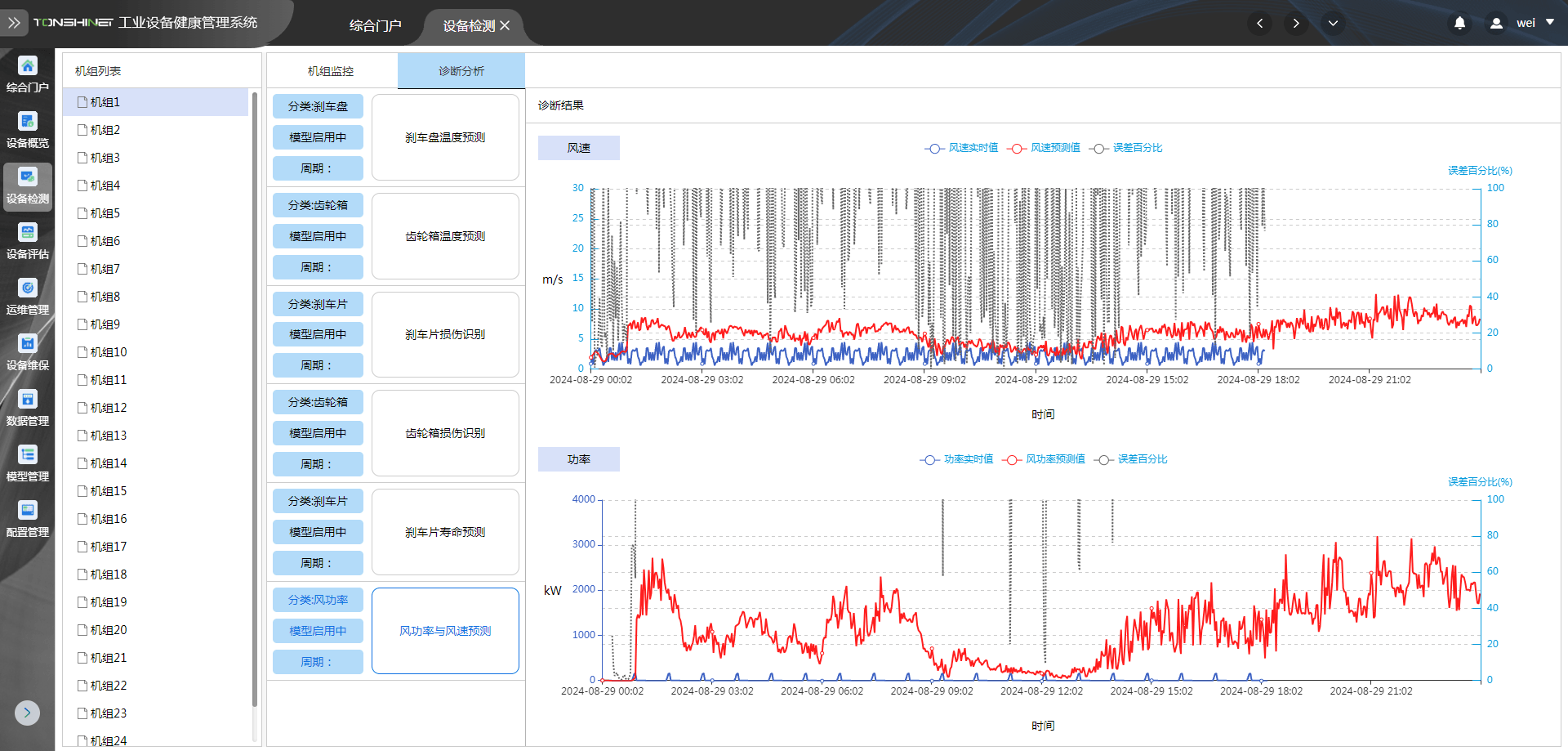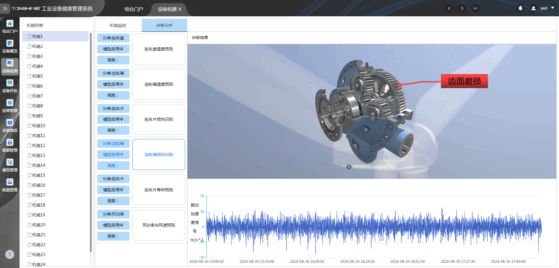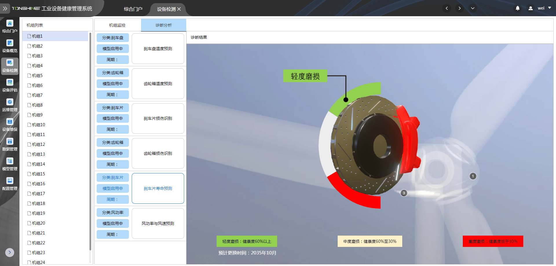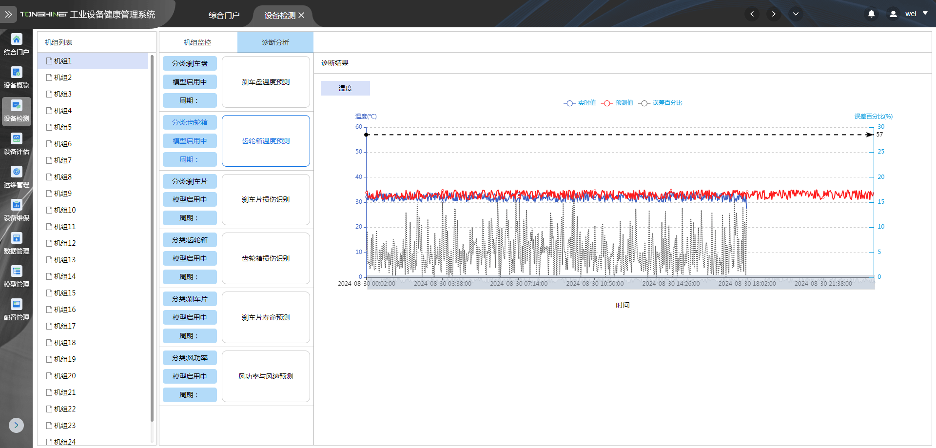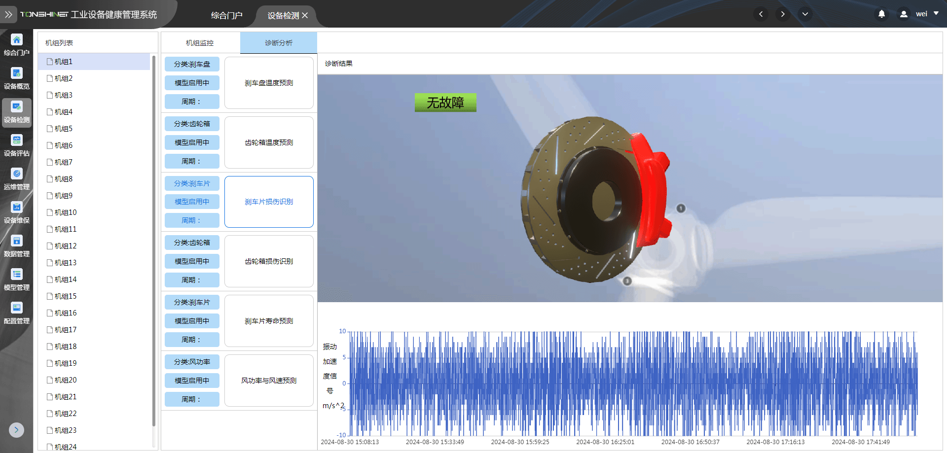 设备关键性能指标的实时监测,基于大数据分析对关键指标预测的算法,能够提前预测设备的潜在故障。
