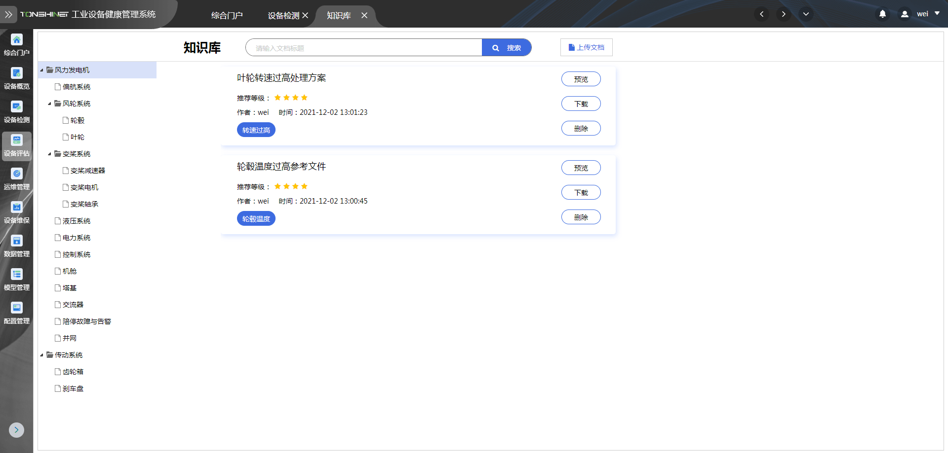 管理设备故障分类,结合实际运维反馈的记录,上传知识文档生成设备运维知识库,提供有效的运维支持。