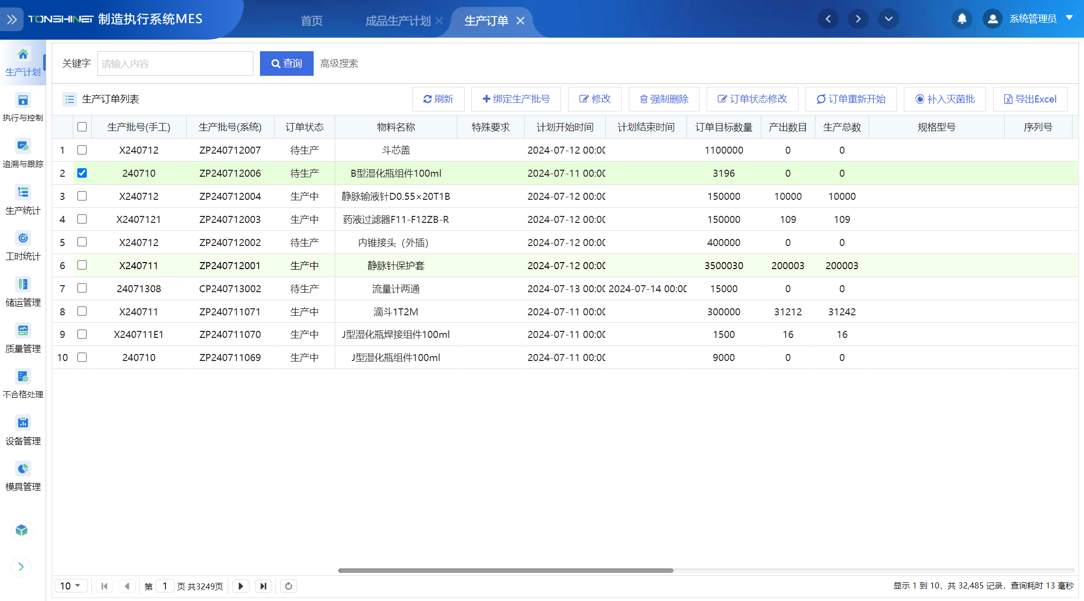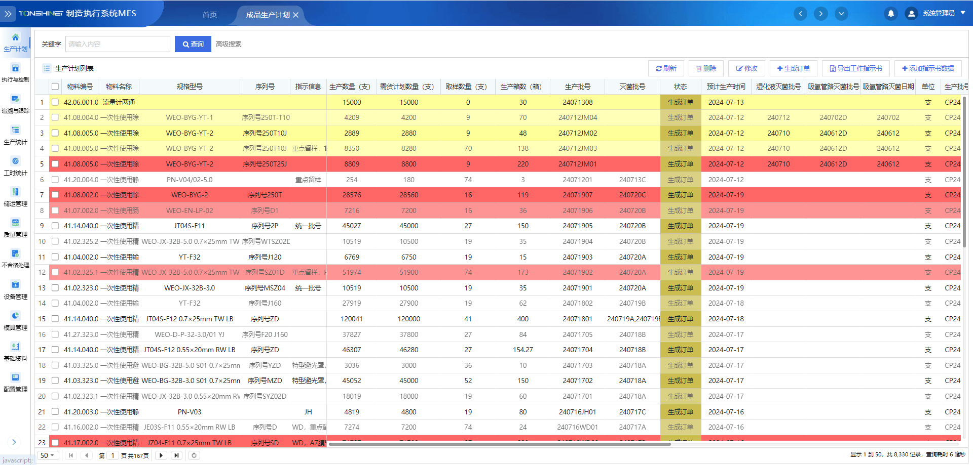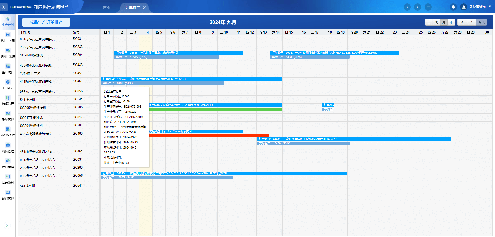 推动生产:MES制造执行系统以订单为源头,生产计划为依托,实现生产与销售的高效结合,推动生产。