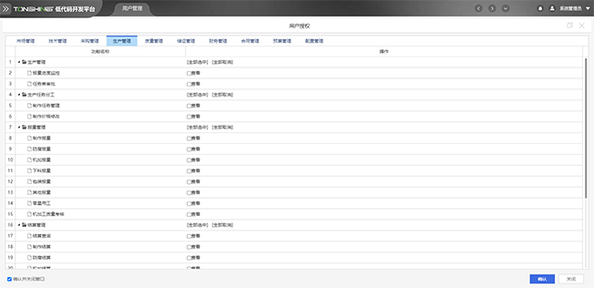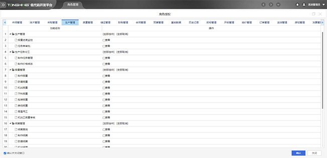 平台采用基于角色的权限控制,不同角色的用户,拥有不同的权限,用户可拥有不同角色,各角色分配功能按钮权限,形成用户-角色-权限关系,实现权限精细化控制。