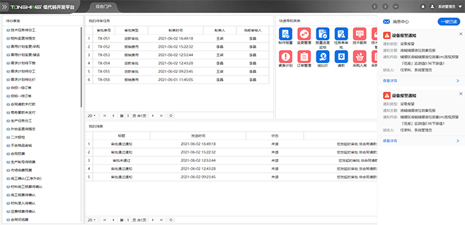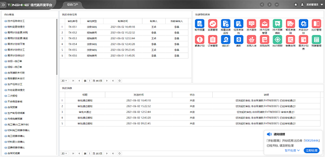 平台提供统一的消息提醒展示,实现消息的分类管理和多端同步发送,用户可基于消息驱动完成业务办理和预警消息查看等功能。