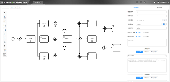 流程设计器是一个可视化的设计流程工具,用户可以轻松增加、删除节点。调整业务的流程走向、每个节点的审批人、会签规则等。
