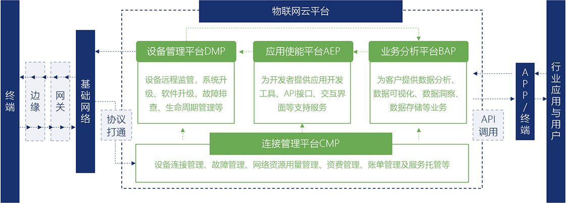实现与网络和硬件的直接对接,为更高层次的信息协同共享提供支撑,主要起到数据汇聚、数据处理的作用,实现应用与物理的硬件设备与网络的解耦,实现感知层设备的“管、控、营”一体化,还服务于北向应用,提供基础数据与服务的调用接口,降低了物联网解决方案的复杂度和成本,推动物联网数据更广泛更深层次的专业化应用,为应用端百花齐放的局面奠定关键基础。