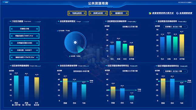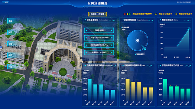公共资源用房系统直观展示教学资源的使用情况,部署公共资源用房系统以方便查询校区、楼栋、楼层的基础信息与排课信息。