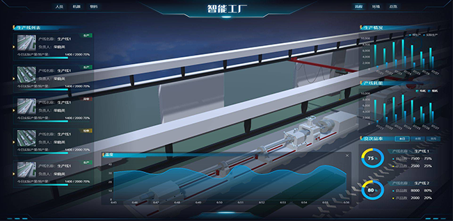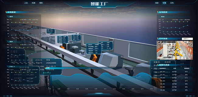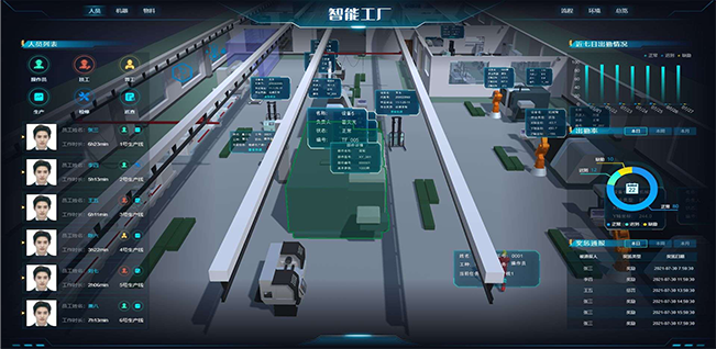 可实现对企业生产运作流程、生产线的外部结构到机械内部细节、再到运作整体流程的可视化呈现,对企业人、机、料、法、环关键要素进行综合监测分析、异常预警。